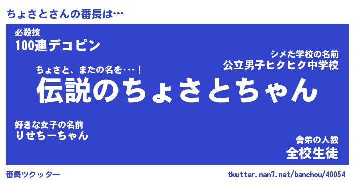 | 伝説のあだ名 | 『伝説のスナイパーちょさと』 |