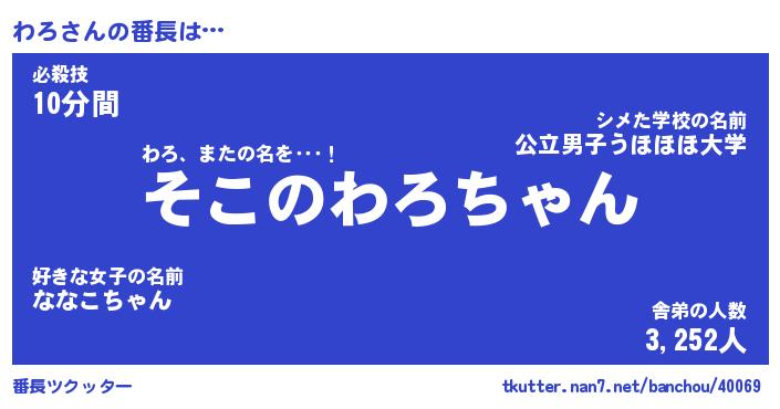 ポケモン風あだ名 | 『ワロチュウ』『ワロダネ』『ヒワロ』 |