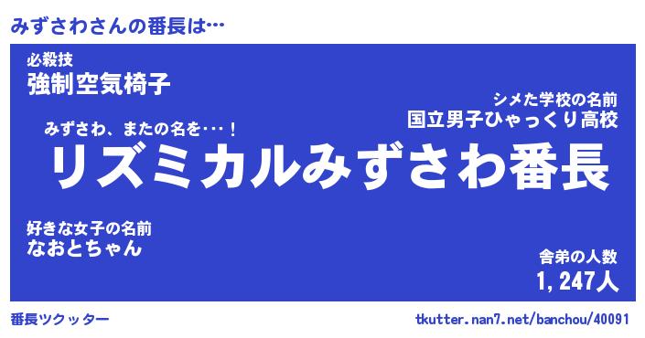 | ファンタジー風あだ名 | 『ミズフェル』『エターナルミズサワー』 |