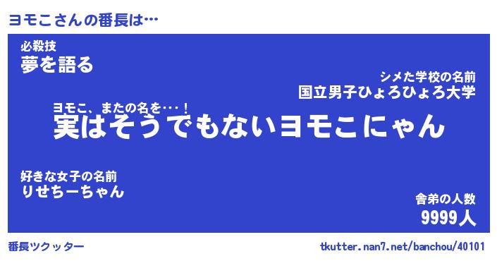 | 伝説のあだ名 | 『封印されしスナイパーヨモこ』 |