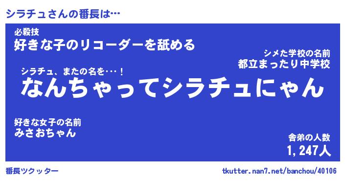 | ヒーロー風カッコイイあだ名 | 『スーパーシラチュ』『銀牙騎士シラ』 |
