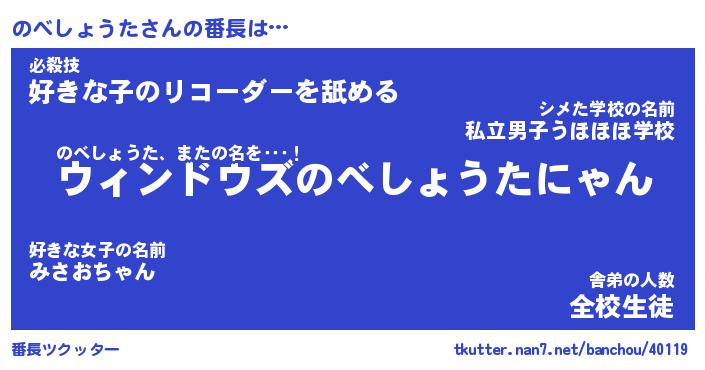 | 伝説のあだ名 | 『伝説の竜騎士のべしょうた』 |
