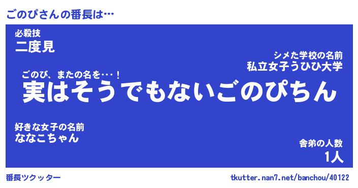 | 意味不明あだ名 | 『ペロリンごのぴ』『ごのぴフォーエバー』 |