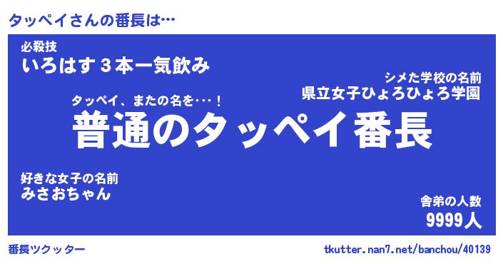 | 意味不明あだ名 | 『ペロリンタッペイ』『永久保存タッペイ』 |