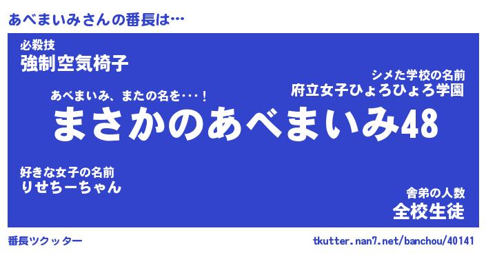 | 肩書あだ名 | 『あべまいみCEO』『あべまいみ総理大臣』 |