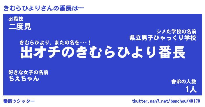| 伝説のあだ名 | 『伝説のスナイパーきむらひより』 |