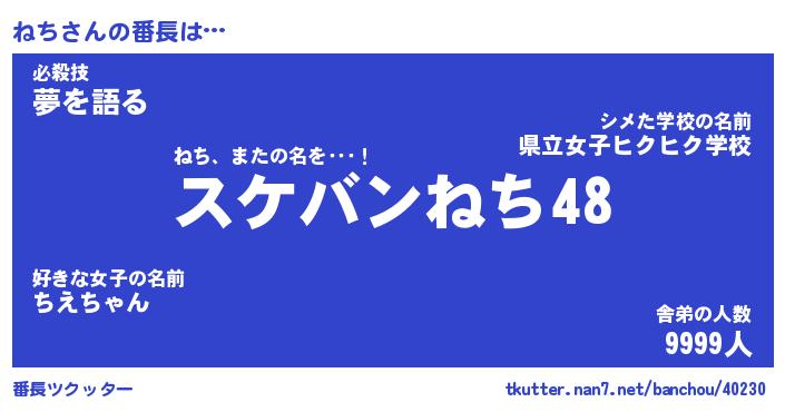 | 2回繰り返すあだ名 | 『ねちねち』『ねねちち』『なあなあ』 |