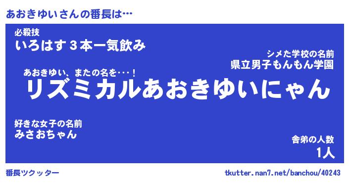 | ファンタジー風あだ名 | 『アオフェル』『エターナルアオキユイー』 |