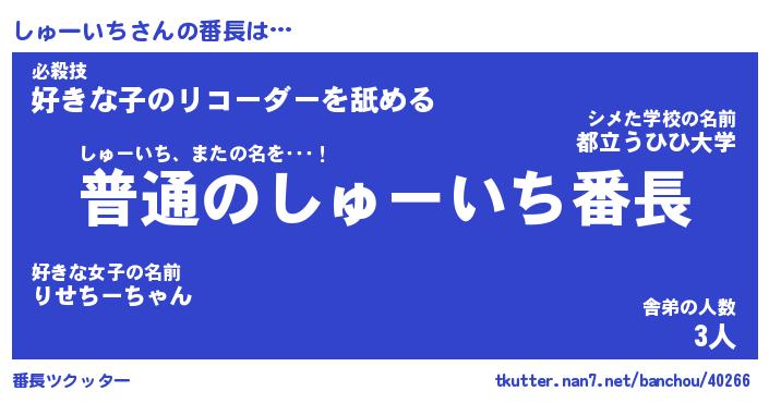 | ファンタジー風あだ名 | 『シュフェル』『エターナルシューイチー』 |