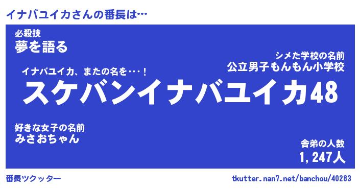 | ヒーロー風カッコイイあだ名 | 『スーパーイナバユイカ』『魔戒騎士イナ』 |
