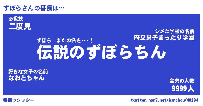 | ポケモン風あだ名 | 『ズボチュウ』『ズボラダネ』 |