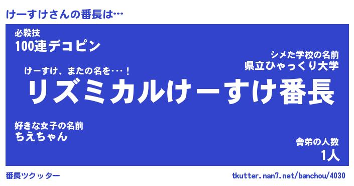 | 意味不明あだ名 | 『ペロリンけーすけ』『永久保存けーすけ』 |