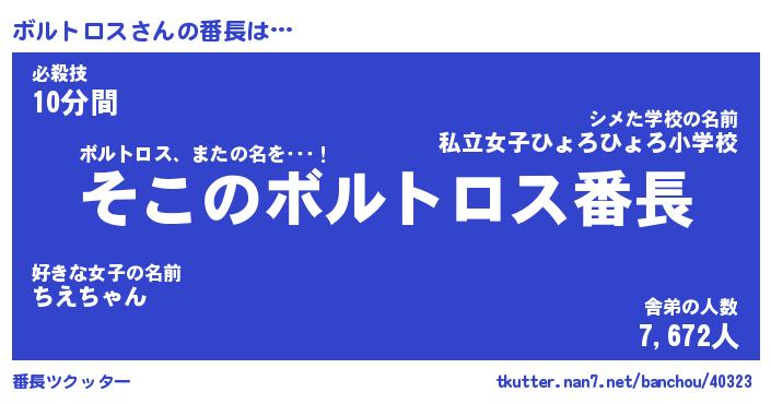 | ヒーロー風カッコイイあだ名 | 『スーパーボルトロス』『炎刃騎士ボル』 |