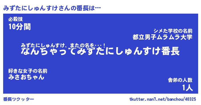 | ヒーロー風カッコイイあだ名 | 『スーパーミズタニシュンスケ』 |