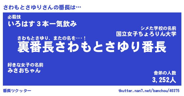 | ヒーロー風カッコイイあだ名 | 『スーパーサワモトサユリ』 |