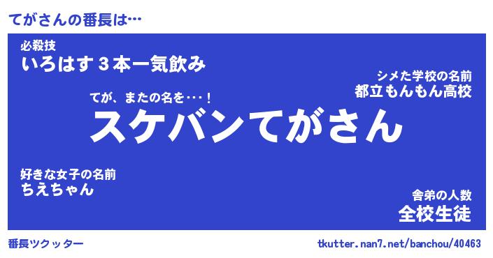 | ファンタジー風あだ名 | 『テガフェル』『エターナルテガー』 |