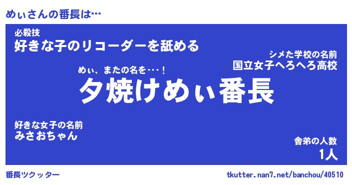 | ヘコむあだ名 | 『めぃにー』『つくし』『めぃ太郎』 |