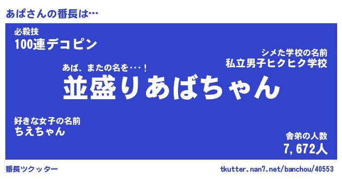 | 2回繰り返すあだ名 | 『あばあば』『ああばば』『ぬるぬる』 |