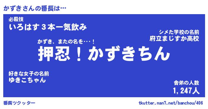 | 意味不明あだ名 | 『ペロリンかずき』『かずきフォーエバー』 |