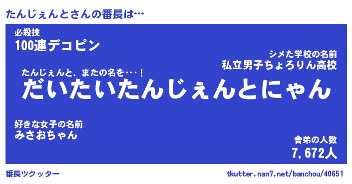 | ポケモン風あだ名 | 『タンチュウ』『タンジダネ』 |