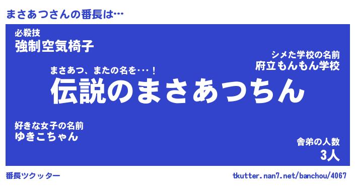| 伝説のあだ名 | 『伝説のスナイパーまさあつ』 |