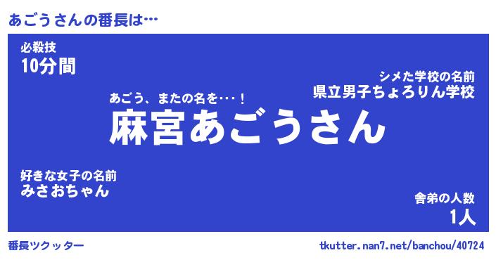 | ピコ太郎風あだ名 | 『アコ太郎』『ピア八郎』『アゴ三郎』 |
