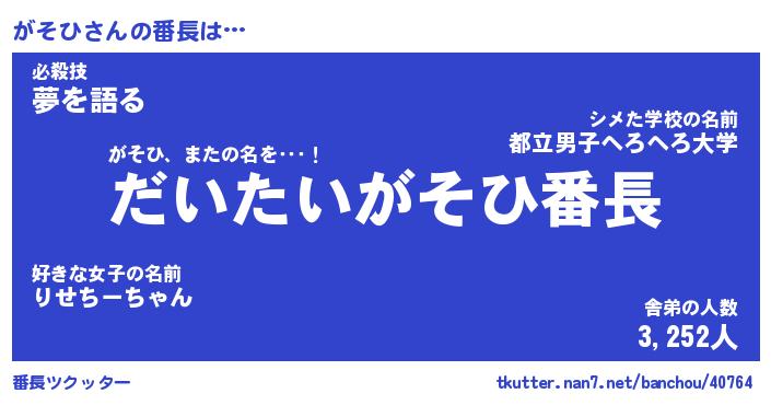 | ピコ太郎風あだ名 | 『ガコ次郎』『ピガ四郎』『ガソ二郎』 |