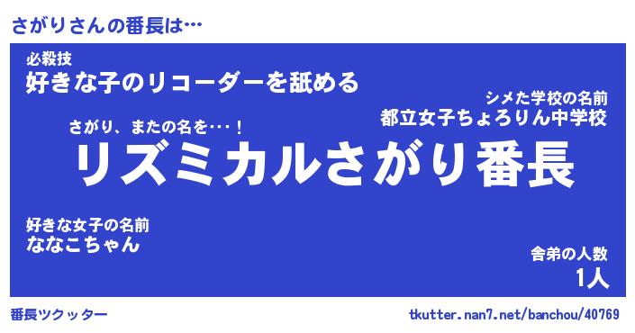 | ヒーロー風カッコイイあだ名 | 『スーパーサガリ』『ウルトラさがりマン』 |