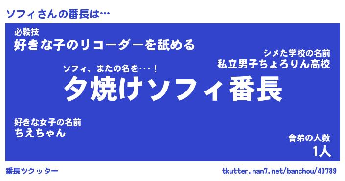| 伝説のあだ名 | 『封印されしスナイパーソフィ』 |