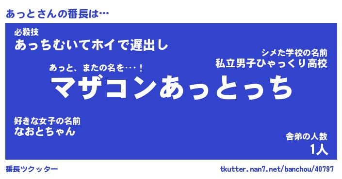 | 伝説のあだ名 | 『封印されしスナイパーあっと』 |