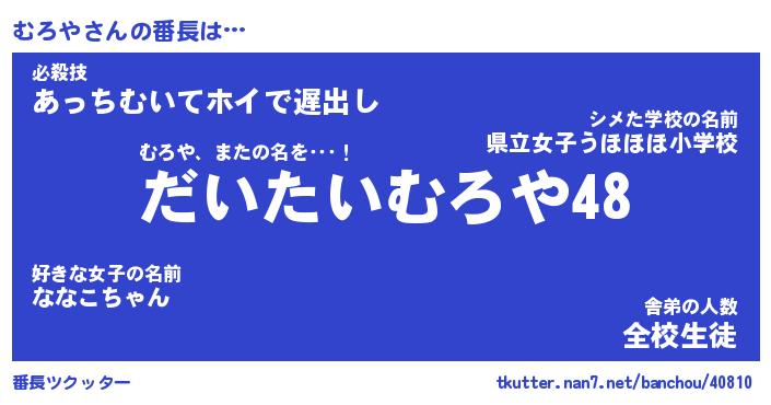 | ヒーロー風カッコイイあだ名 | 『スーパームロヤ』『ウルトラむろやマン』 |