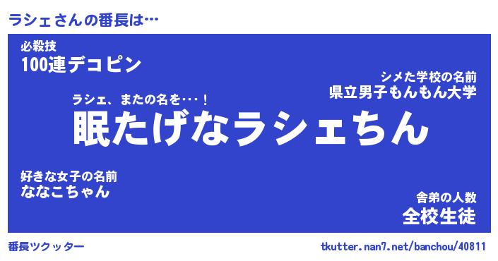| 意味不明あだ名 | 『ペロリンラシェ』『ラシェフォーエバー』 |