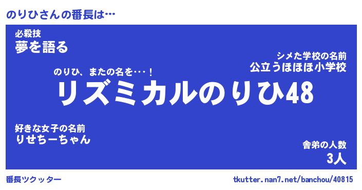 | ヒーロー風カッコイイあだ名 | 『スーパーノリヒ』『ウルトラのりひマン』 |