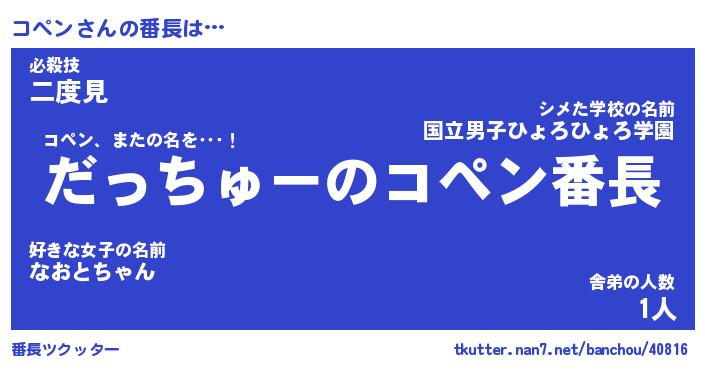 | ヒーロー風カッコイイあだ名 | 『スーパーコペン』『ウルトラコペンマン』 |