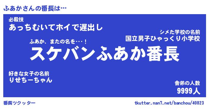 | ヒーロー風カッコイイあだ名 | 『スーパーフアカ』『ウルトラふあかマン』 |