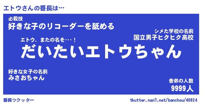 | 2回繰り返すあだ名 | 『エトエト』『エエトト』『ぬめぬめ』 |