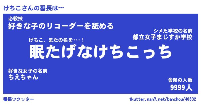 | 伝説のあだ名 | 『封印されしスナイパーけちこ』 |