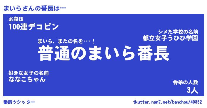 | ヒーロー風カッコイイあだ名 | 『スーパーマイラ』『ウルトラまいらマン』 |