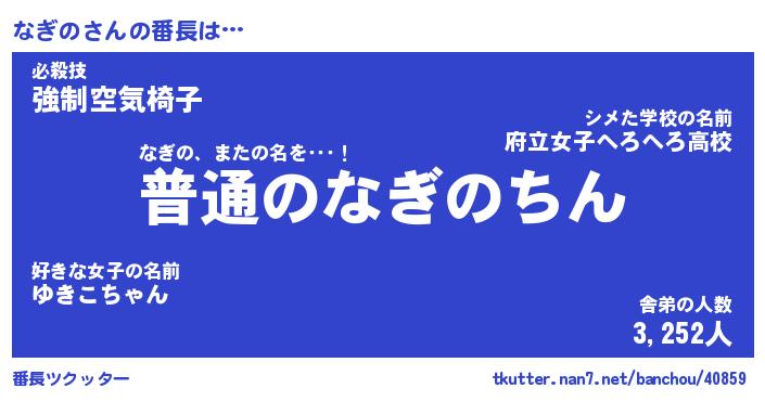 | 2回繰り返すあだ名 | 『なぎなぎ』『ななぎぎ』『ぬぷぬぷ』 |