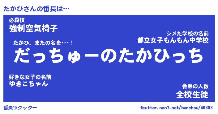 | ヒーロー風カッコイイあだ名 | 『スーパータカヒ』『ウルトラたかひマン』 |