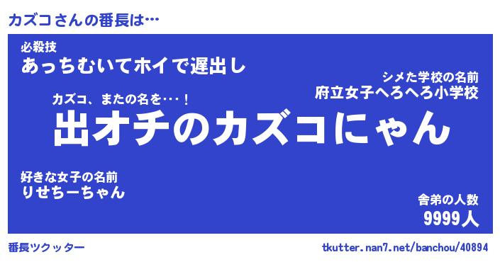 | 意味不明あだ名 | 『ペロリンカズコ』『カズコフォーエバー』 |