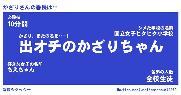 | 意味不明あだ名 | 『ペロリンかざり』『かざりフォーエバー』 |