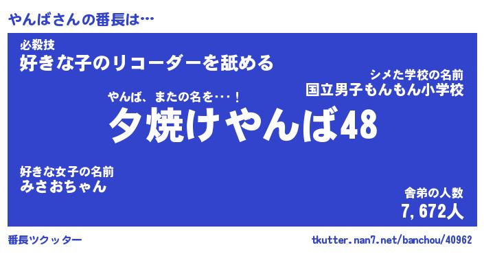 | 意味不明あだ名 | 『ペロリンやんば』『やんばフォーエバー』 |