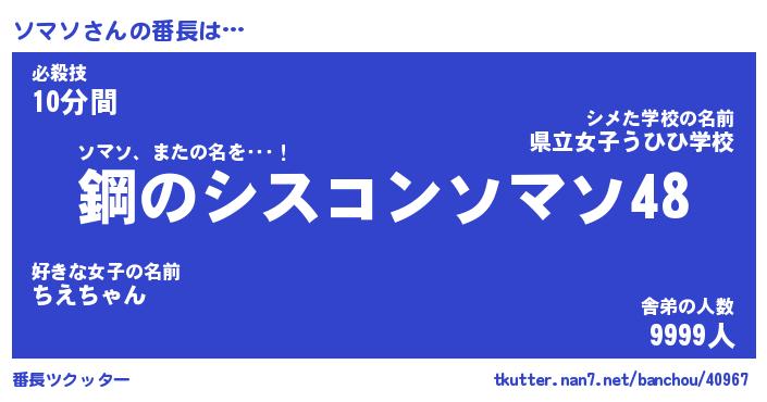 | ヒーロー風カッコイイあだ名 | 『スーパーソマソ』『ウルトラソマソマン』 |