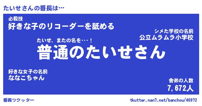 | ポケモン風あだ名 | 『タイチュウ』『タイセダネ』 |