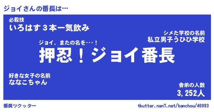 | ヘコむあだ名 | 『ジョにー』『なまこ酢』『ジョっぺ』 |