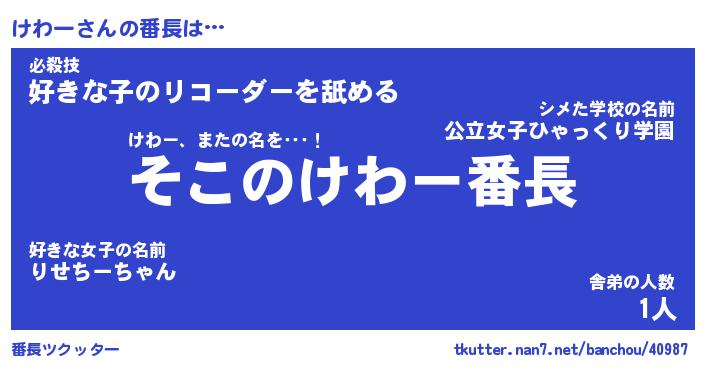 | ヒーロー風カッコイイあだ名 | 『スーパーケワー』『ウルトラけわーマン』 |