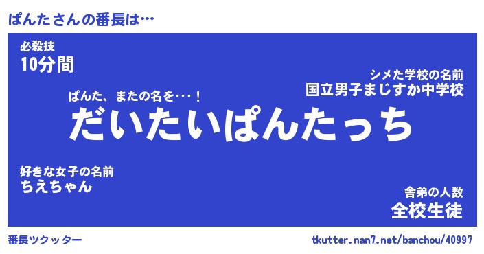 | 肩書あだ名 | 『ぱんた御曹司』『ぱんた国家主席』 |
