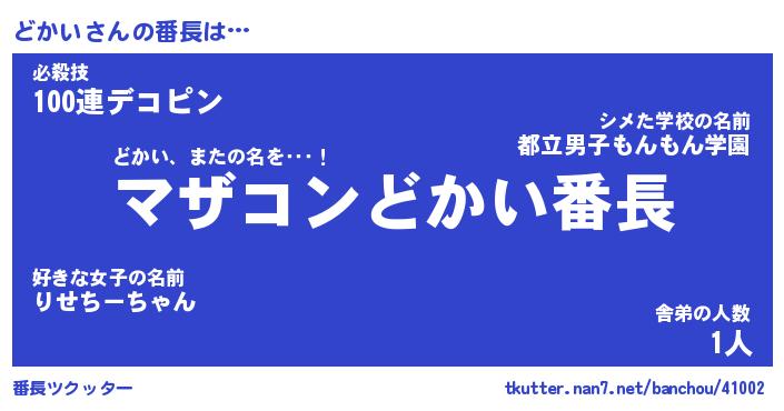 | ヒーロー風カッコイイあだ名 | 『スーパードカイ』『ウルトラどかいマン』 |
