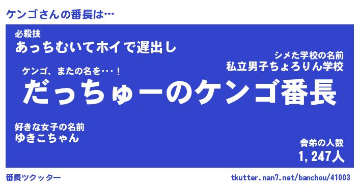 | ポケモン風あだ名 | 『ケンチュウ』『ケンゴダネ』 |
